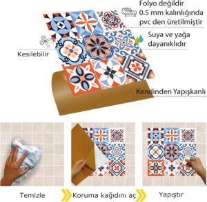 “Tink Kendinden Yapışkanlı Fayans Çıkartması, Zemin Duvar Kaplama, Yapışkanlı Fayans Kaplama PVC Karo Karma Meksika 019 Desenli 30×30 cm (11 Adet / 1 m²)” için yorum yapan ilk kişi siz olun