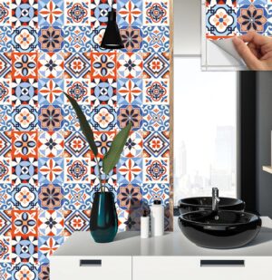 Tink Kendinden Yapışkanlı Fayans Çıkartması, Zemin Duvar Kaplama, Yapışkanlı Fayans Kaplama PVC Karo Karma Meksika 019 Desenli 30×30 cm (11 Adet / 1 m²)