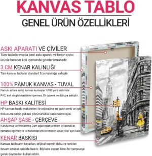 Tüm kanvas tablolarımızda 370gr/m2 %100 pamuk astarlı birinci sınıf sanatsal kanvas kumaşlar kullanılmaktadır. Sağlığa zararlı madde bulunmamaktadır. PVC, asit veya herhangi bir kanserojen madde içermez. %100 pamuktan üretilen kanvas kumaşlar, uzun yıllar boyunca dayanıklı bir biçimde ürününüzü kullanmanızı sağlar. Tüm kanvas tablolar profesyonel işçilik ile hazırlanır.