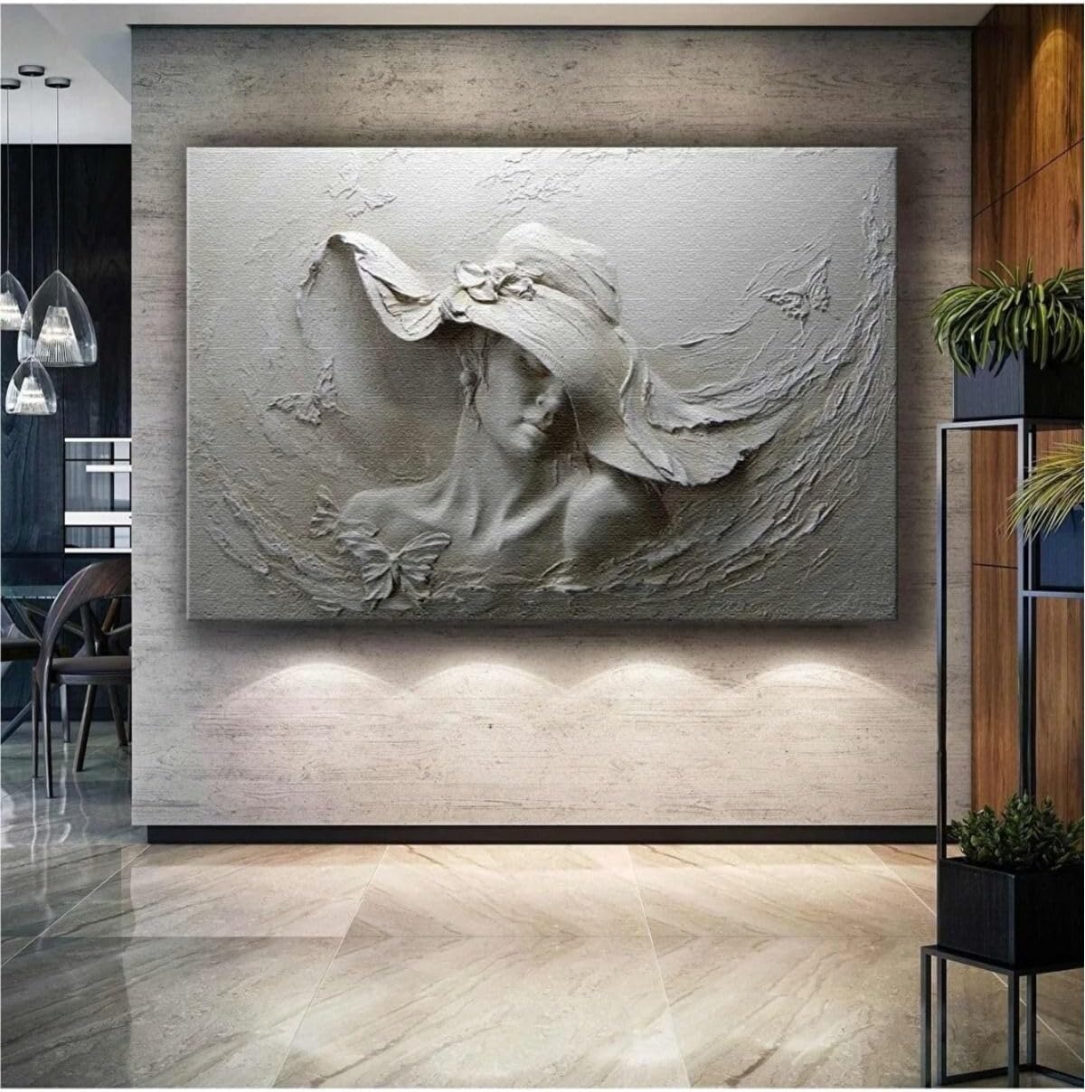 Ar Ajans Kanvas Tablo Beyaz Mermer Kabartma Efektli Şapkalı Kadın 3D Kanvas Tablo Art00146 60 X 90