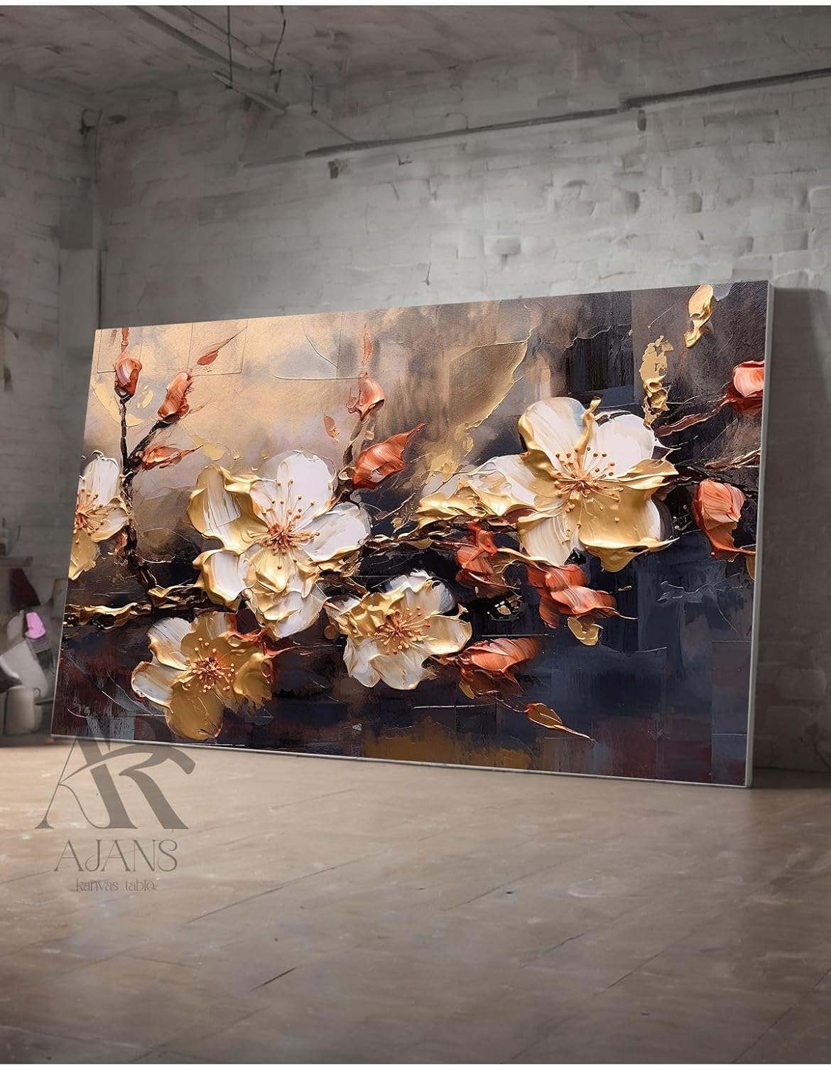 Ar Ajans Kanvas Tablo Çiçek Açan Dalın Ahengi Yağlı Boya Görünümlü Dekoratif Ofis Koridor Salon Oturma Odası Kanvas Tablo 80 X 120