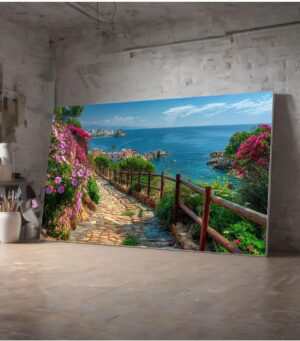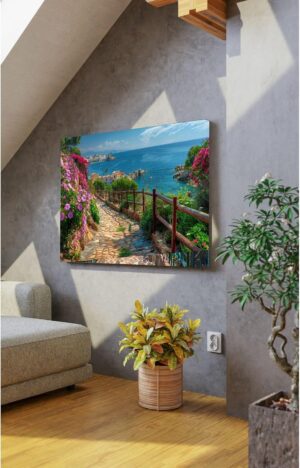 Yüksek kaliteli kanvas materyali sayesinde uzun ömürlü ve dayanıklı kullanım sunar; Doğa temalı tasarımıyla mekanınıza huzurlu ve estetik bir atmosfer katar; Canlı renkleri ve detaylı işçiliğiyle göz alıcı bir görsel şölen sunar; Deniz manzarası ve çiçek desenleriyle evinizin veya ofisinizin dekorasyonuna doğal bir dokunuş ekler;