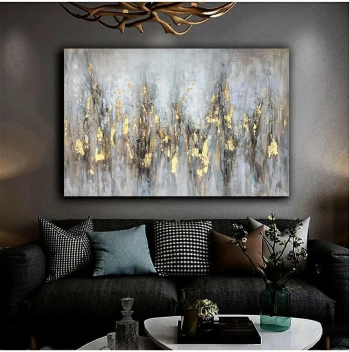 Ar Ajans Kanvas Tablo Soyut Dikey Çizgiler Gold Temalı Yağlı Boya Çizimli Dekoratif Kanvas Tablo 80 X 120