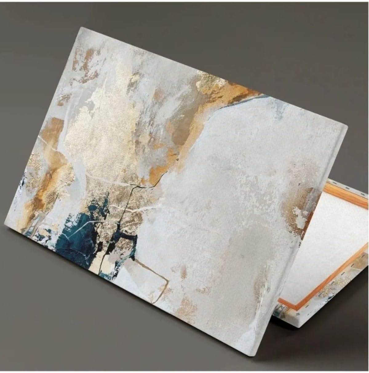 Ar Ajans Kanvas Tablo Soyut Sanat Altın Dokular Mavi Turkuaz Krem Tekstüre Modern Sanat Kanvas Tablo 80 X 120
