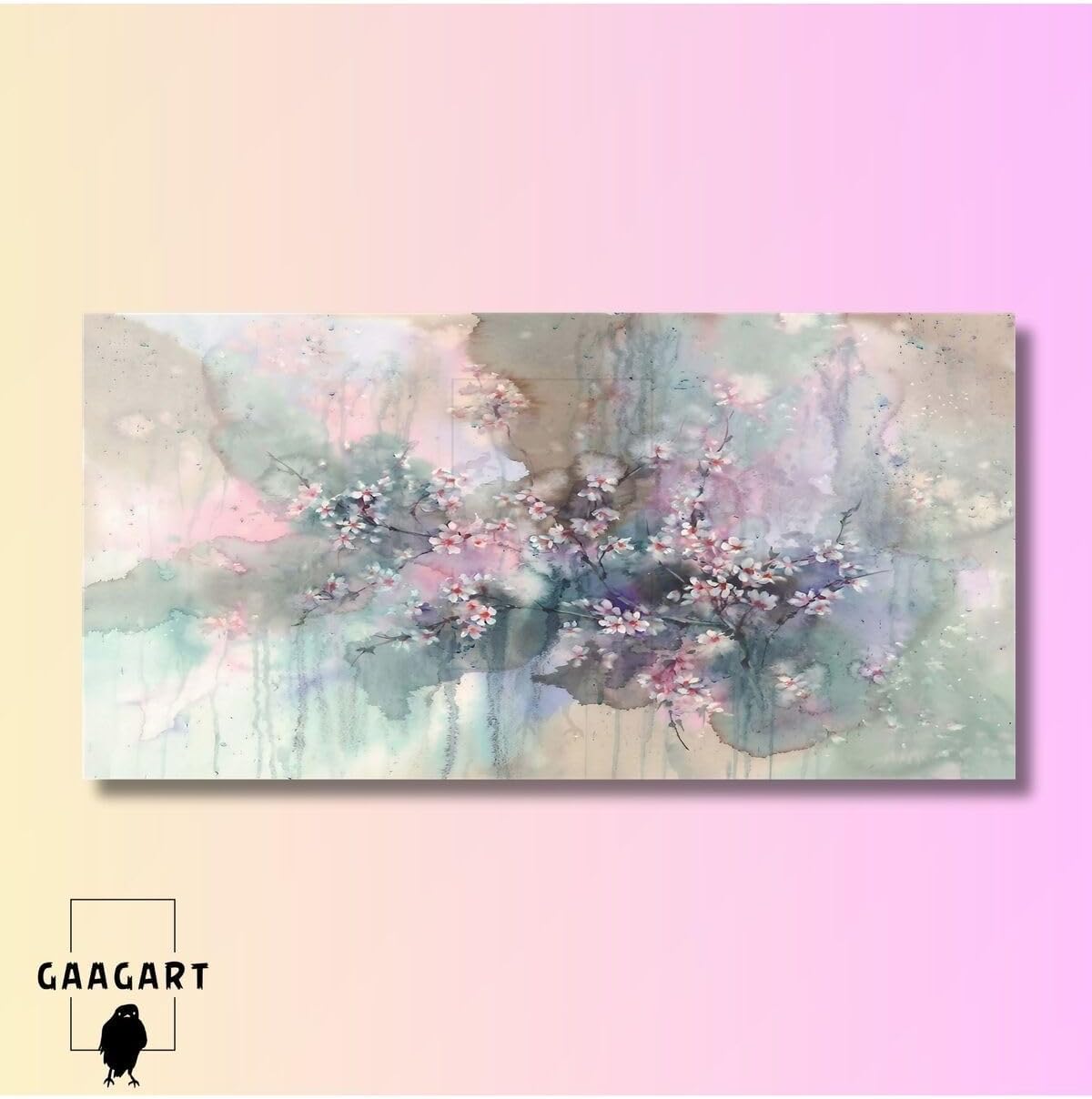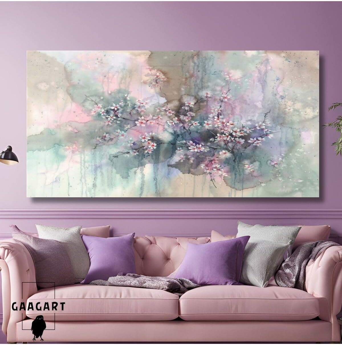 Gaagart Panoramik Kanvas Duvar Tablosu Lila Tonlarında Küçük Çiçekler, 140 X 70