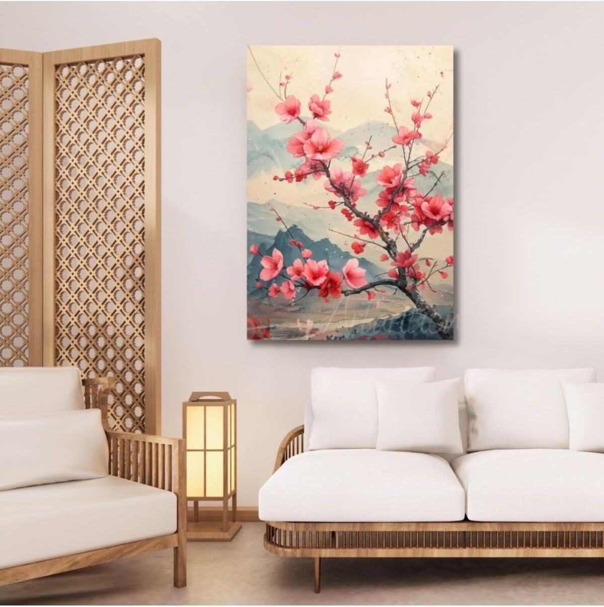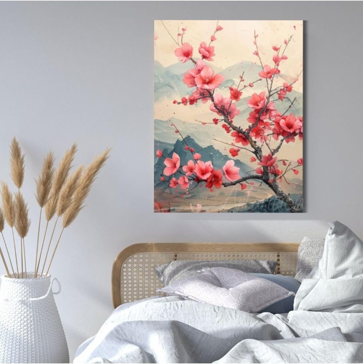 Kanvas Dijital HD Baskı Kanvas Tablo Japon Kiraz Çiçekleri Duvar Tablosu