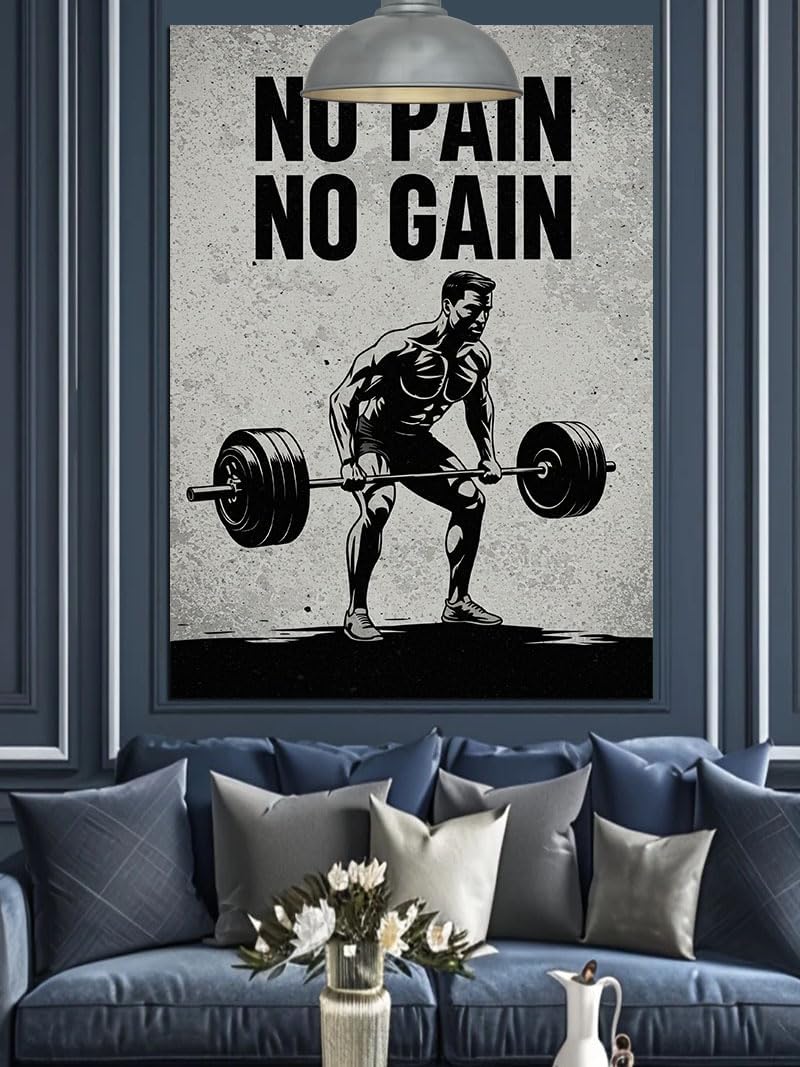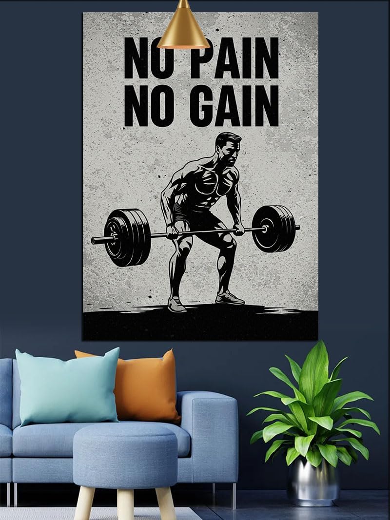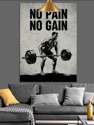 No Pain No Gain Yazılı Fitness Gym Motivasyon Dekoratif Kanvas – Mdf Ahşap Tablo